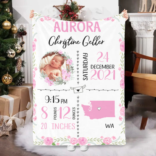 View full detailsPersonalized Blanket, Baby Photo Birth Statistics, Upload Photo Gift, Gift For Baby, Newborn Baby